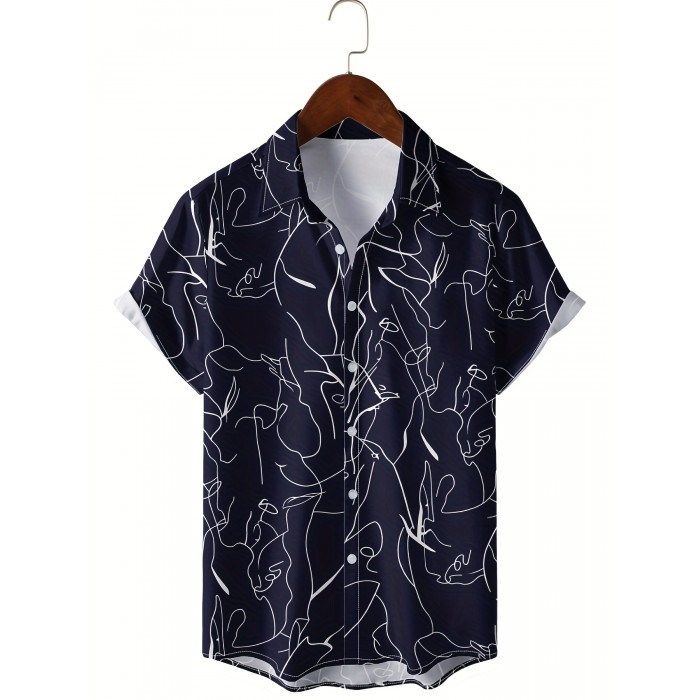 Men's Casual Allover Print Button Up Short Sleeve Hawaiian Shirt For Summer Beach Vacation Resort